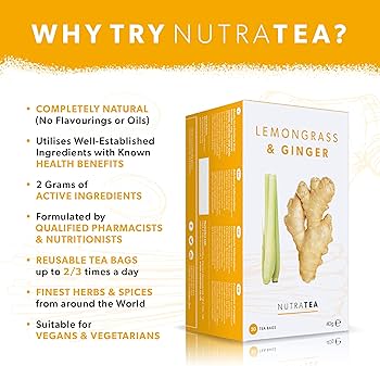 Nutra Lemon Grass & Ginger Tea Is A Naturally Caffeine-free Blend Trusted To Bolster The Immune System, Soothe Digestive Discomfort, And Promote Relax...